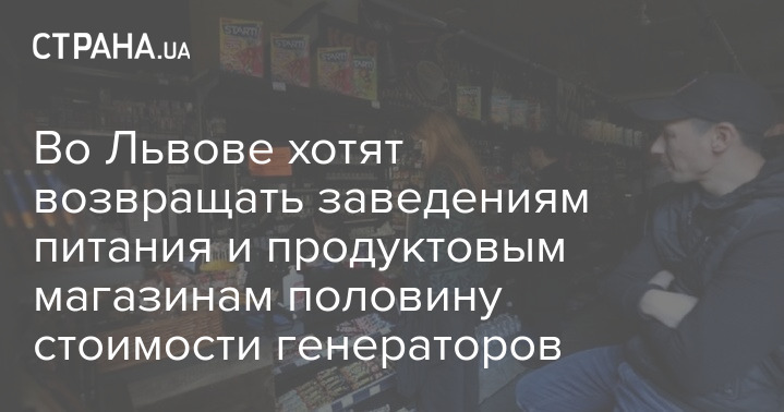 Львов будет компенсировать заведениям питания и продуктовым магазинам 50% стоимости генераторов, но не более 80 тыс. грн.