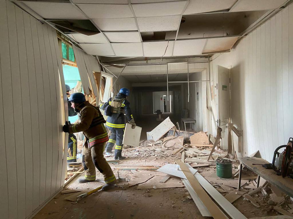 Повреждена больница в Белополье, погиб подросток, повреждены расположенные рядом дома и автомобили.