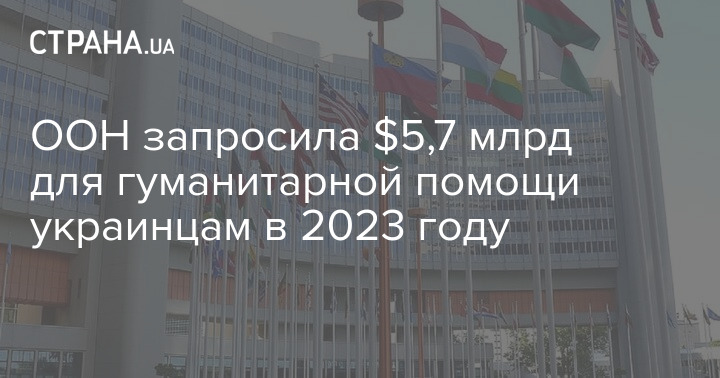 ООН необходимо собрать рекордные 51,5 млрд долларов в 2023 году для оказания помощи 230 млн самых уязвимых людей. Из них - 5,7 млрд долларов для гуманитарной помощи пострадавшим от войны украинцам.