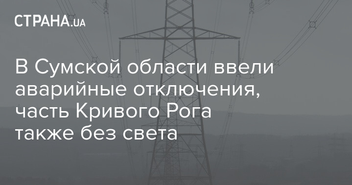 В Сумской области ввели аварийные отключения, часть Кривого Рога также без света