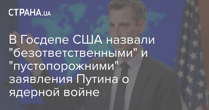 Представитель Госдепа США Нед Прайс осудил "пустопорожние разговоры" Владимира Путина о ядерном оружии после того, как вчера Путин упомянул возрастающие риски ядерной войны, но заявил, что Москва не нанесет удар первой, сообщает "Голос Америки"