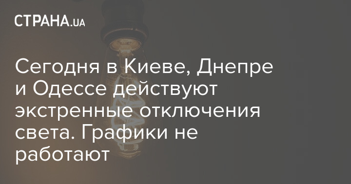 В пятницу, 9 декабря, в Киеве, Одессе и Днепре применяются экстренные отключения света. Об этом сообщает ДТЭК.