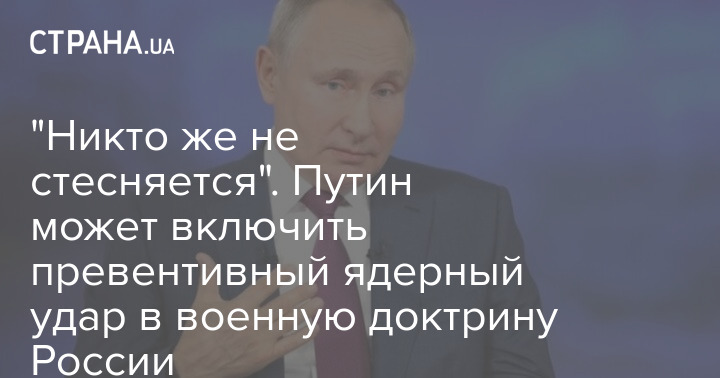 Президент РФ Владимир Путин заявил, что Россия может рассмотреть вопрос об официальном включении в свою военную доктрину возможности нанесения первой превентивного ядерного удара с целью разоружения противника.