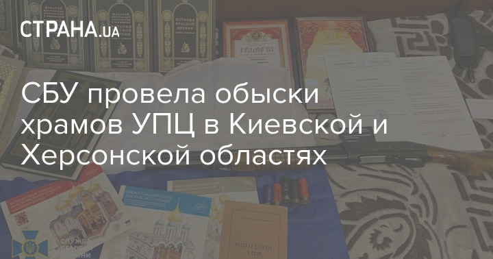 Служба безопасности Украины заявила, что обнаружила "подозрительных лиц, незарегистрированное оружие и российские агитки" на объектах Украинской православной церкви в Киевской и Херсонской областях.