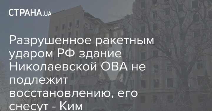Глава Николаевской областной военной администрации Виталий Ким заявил, что разрушенное в марте обстрелом российской армии здание ОВА не подлежит восстановлению.