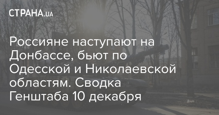 В Генеральном штабе Вооруженных сил Украины опубликовали оперативную сводку с фронта по состоянию на 18:00 10 декабря. Сообщается, что российские войска наступают на Донбассе и обстреливают Одесскую и Николаевскую области.