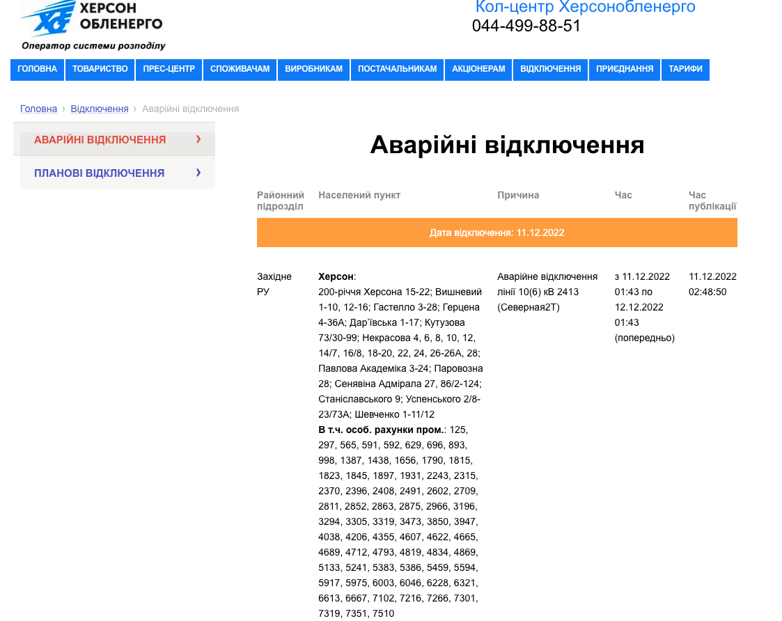 Впрочем, обстрелы вносят свои коррективы, и после них регулярно гаснет свет у тысяч абонентов. Например, на сайте облэнерго сейчас сообщается, что из-за аварий по некоторым адресам света может не быть и по 10, а то и по 24 часа. А после сегодняшнего обстрела свет пропал во всем Херсоне.