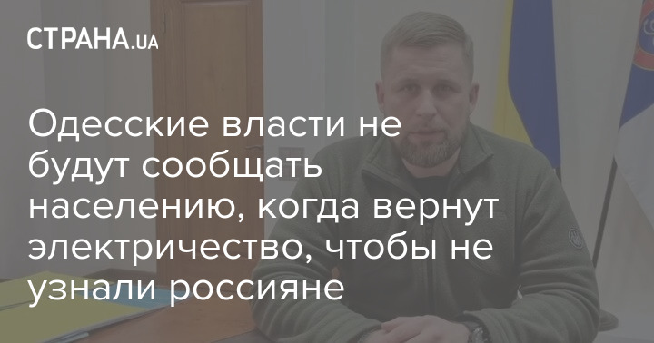 Одесские власти не будут сообщать населению, когда вернут электричество, чтобы не узнали россияне