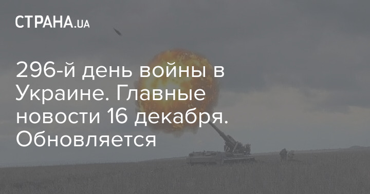В пятницу, 16 декабря, в Украине идет уже 296-й день войны с РФ.