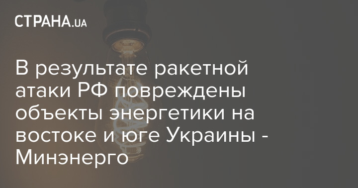 В результате ракетной атаки РФ повреждены объекты энергетики на востоке и юге Украины - Минэнерго