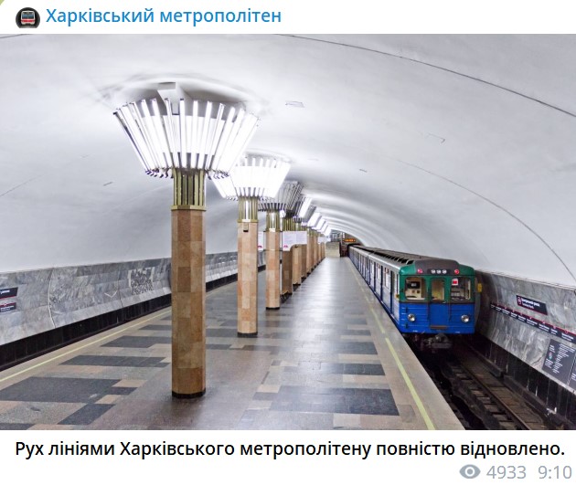 Метро в Харькове также уже запустили, сообщила пресс-служба метрополитена.