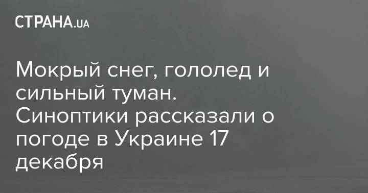Сегодня, 17 декабря, в Украине ожидается мокрый снег, гололед и сильный туман.