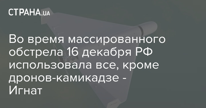 Во время массированного обстрела 16 декабря РФ использовала все, кроме дронов-камикадзе - Игнат