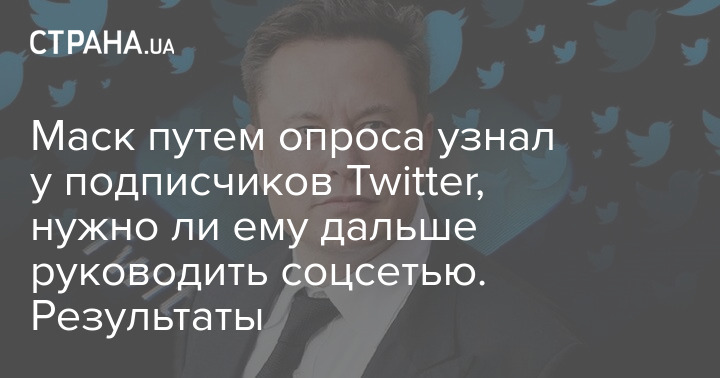 "Должен ли я уйти с поста главы Twitter? Буду придерживаться результатов этого опроса", - написал Маск.