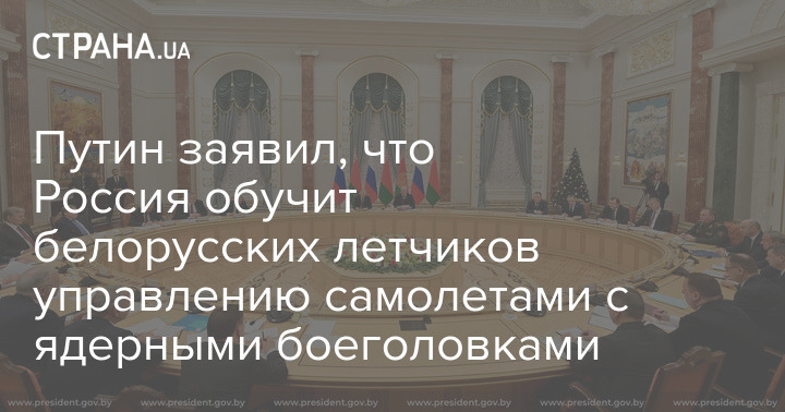 Президент РФ Владимир Путин на пресс-конференции с главой Беларуси Александром Лукашенко заявил, что белорусские военные летчики будут обучены управлению самолетами, на которые установлены ракеты "со специальной боевой частью" (то есть, видимо, с ядерными боеголовками).