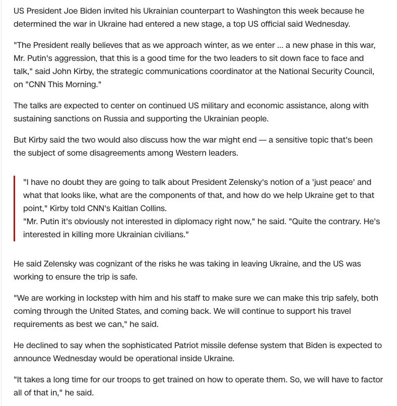Источник также говорит, что Зеленский был готов к поездке только при условии значительного прорыва в двусторонних отношениях Украины и США. Таким прорывом, по оценке CNN, стал новый пакет американской помощи с системами ПРО "Пэтриот".