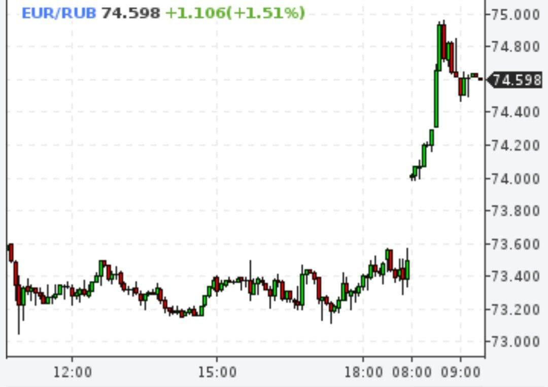 В России падает рубль по отношению к основным валютам - к доллару, к евро и к юаню. Курс нацвалют РФ к "американцу" преодолел планку в 70 руб. за доллар. Евро - в районе 75 рублей.