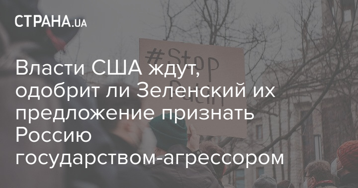 Власти США ожидают, одобрит ли президент Украины Владимир Зеленский их предложение признать Россию государством-агрессором.