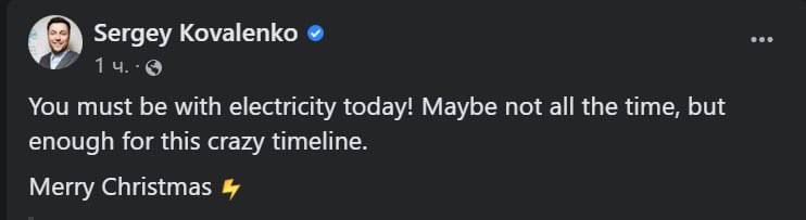 "Вы должны быть сегодня с электричеством. Может, не всегда, но достаточно для этой сумасшедшей временной линии", - пишет Коваленко.