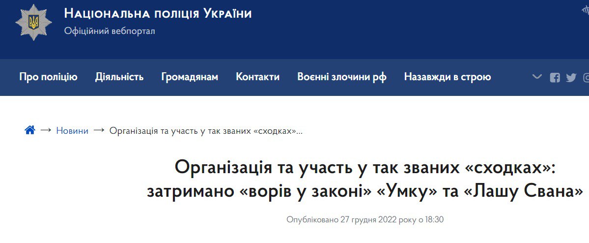 18.55 Нацполиция подтвердила информацию о задержание двух «воров в законе» - «Умки» (Сергей Олейник) и «Лаши Свана» (Лаша Джачвлиани).