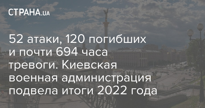 52 атаки, 120 погибших и почти 694 часа тревоги. Киевская военная администрация подвела итоги 2022 года