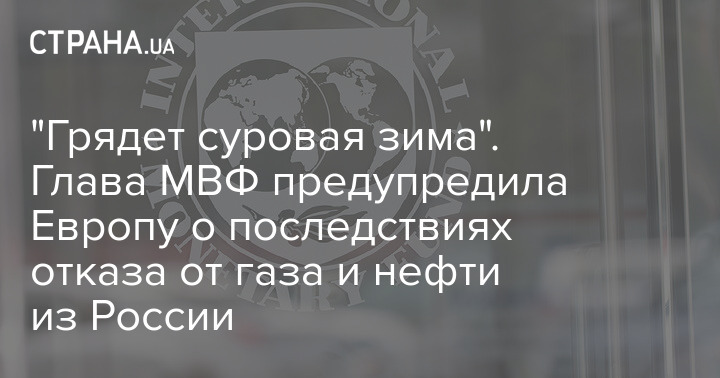 Страны Европы, которые снижают зависимость от российского газа и нефти, ожидает "суровая зима", заявила директор-распорядитель Международного валютного фонда (МВФ) Кристалина Георгиева американскому телеканалу CBS.