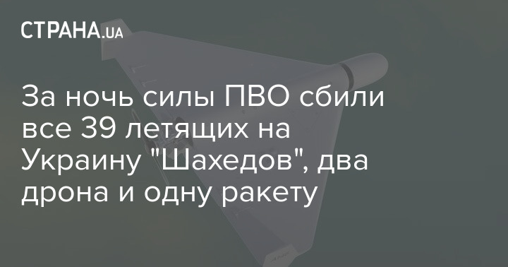 В ночь с 1 на 2 января россияне нанесли массированный удар беспилотникам-камикадзе. Силами ПВО и огневых групп все 39 ударных БПЛА уничтожено.