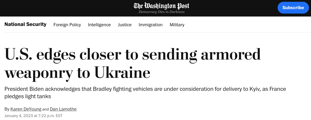 WP пишет, что первая передача западной мобильной бронетехники является еще одной важной вехой в расширении поставок передового вооружения Украине.
