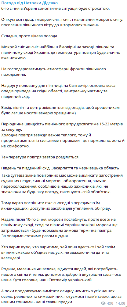 В пятницу, 6 января, мокрый снег и снег наиболее вероятны на западе, севере и северо-востоке Украины, где температура воздуха будет значительно ниже. Там будут хозяйничать атмосферные фронты северного происхождения.