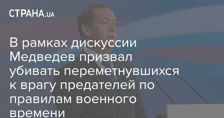 В рамках дискуссии Медведев призвал убивать переметнувшихся к врагу предателей по правилам военного времени