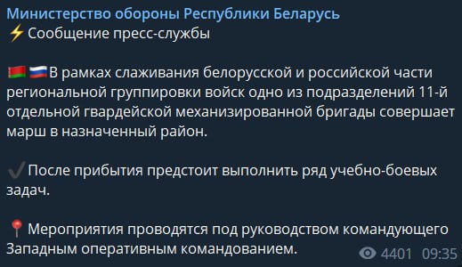 10.17 В Беларуси в рамках совместных учений с РФ намерены совершить "марш в назначенный район". Куда именно - не сообщают.