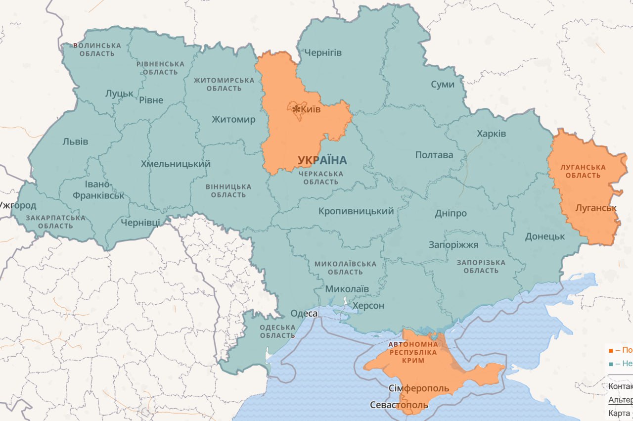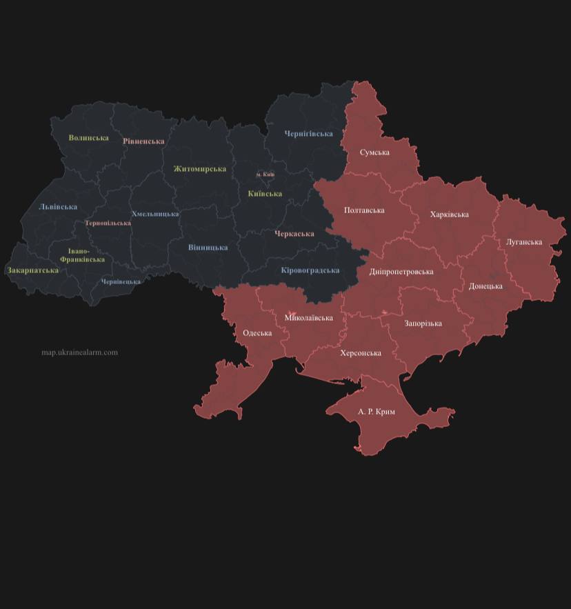 18:12 Карта воздушных тревог на данный момент.