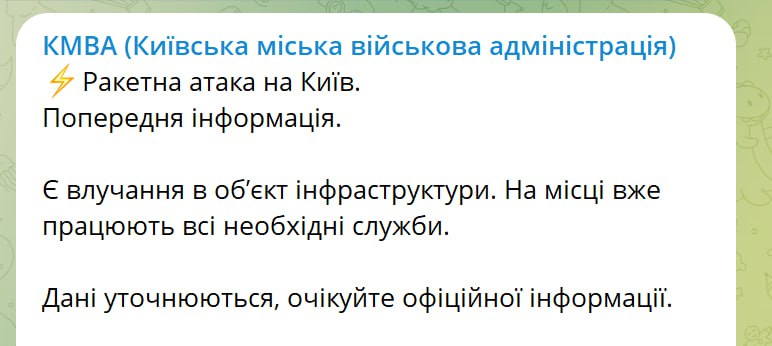 10:09 Киевская военная администрация подтвердила прилет по объекту инфраструктуры в столице.