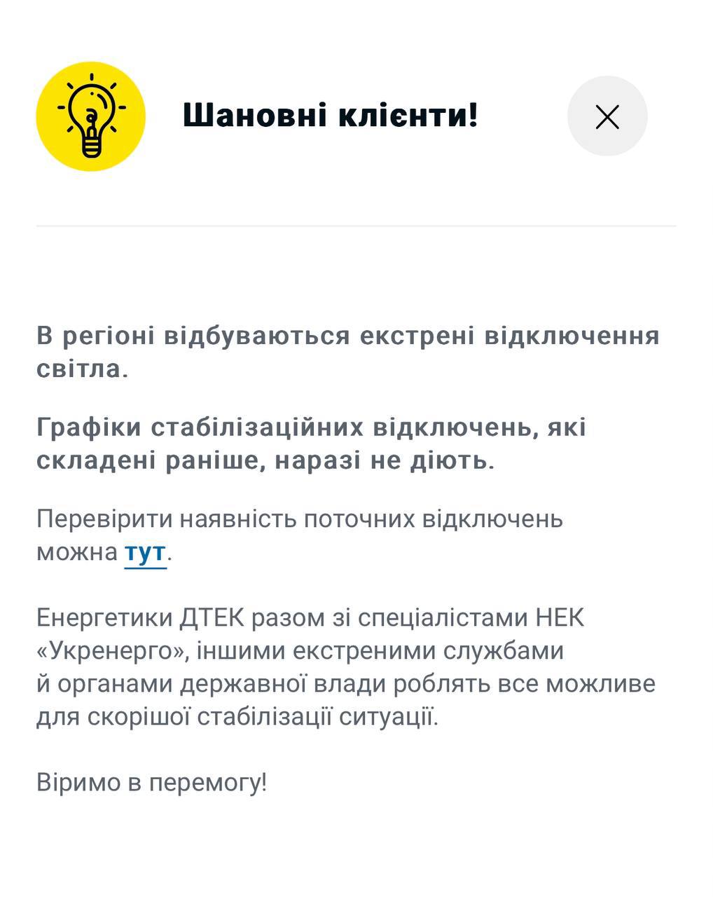 "Возможны аварийные отключения электроснабжения в городе и населенных пунктах области", - предупреждает Синегубов.
