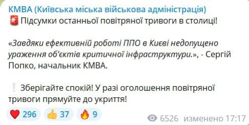 С утра зенитными управляемыми ракетами С-400 (С-300) с северного направления была атакована столица.