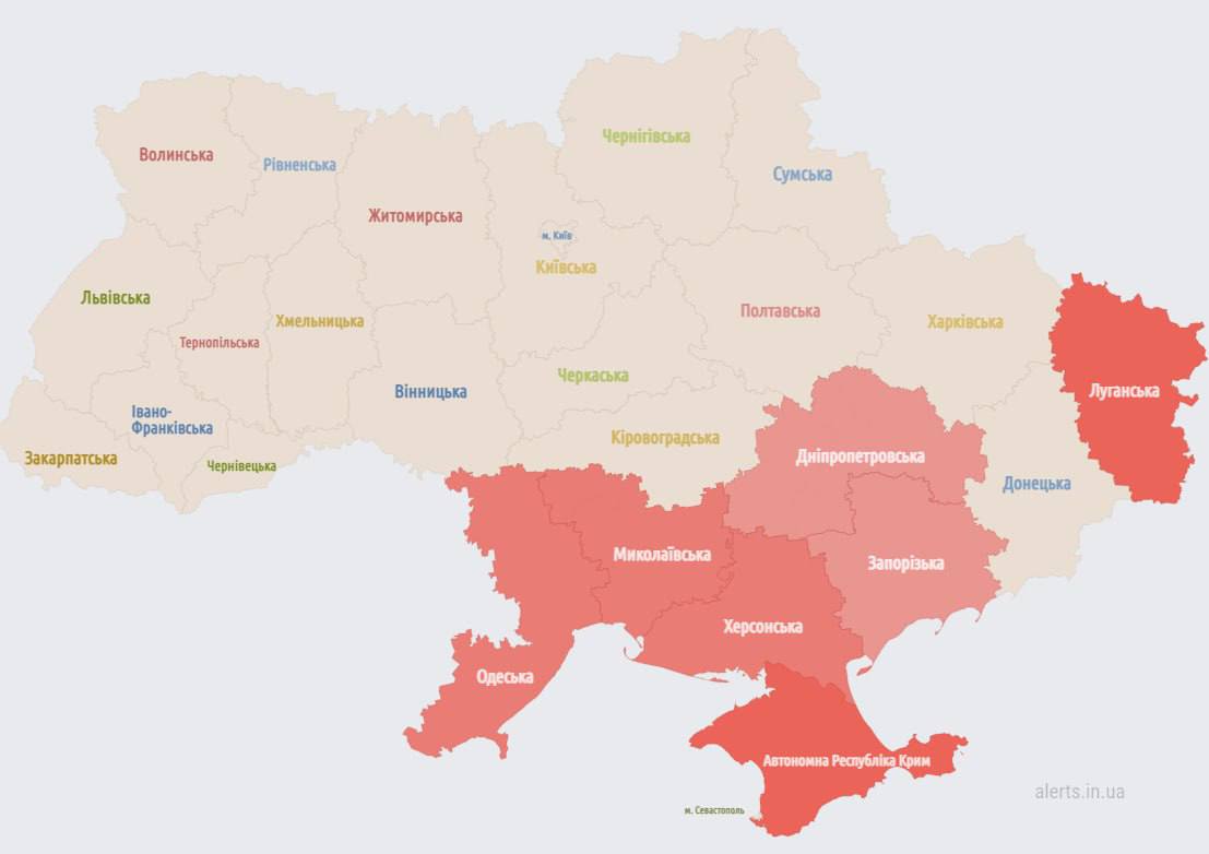 07:47 Воздушная тревога объявлена в Днепропетровской и Николаевской областях.