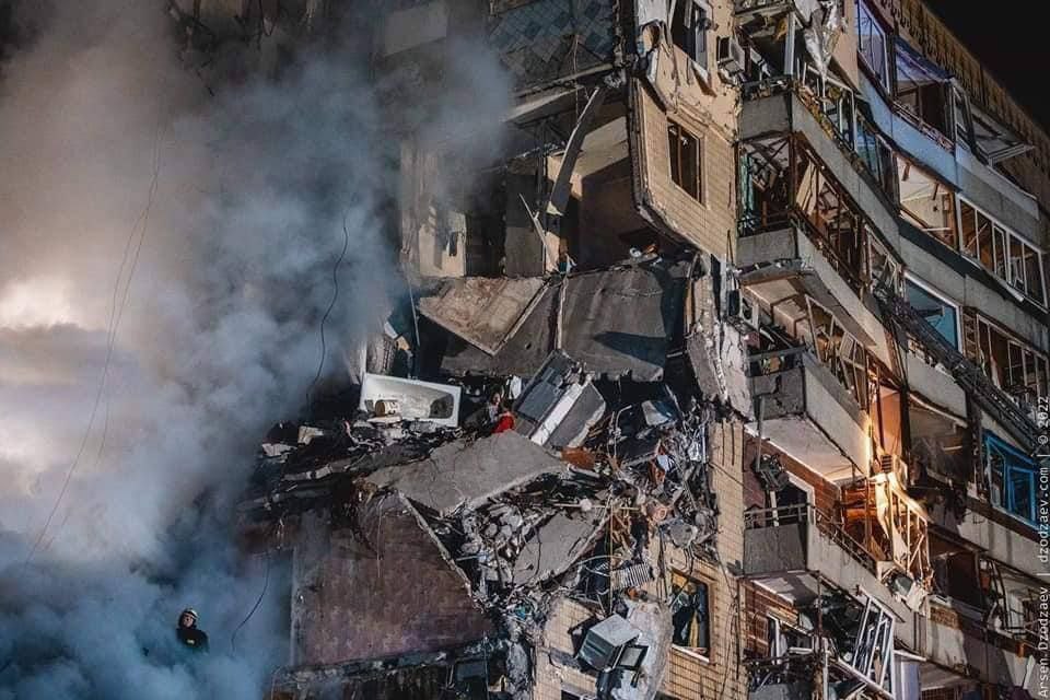 22:42 Уже десять погибших в Днепре после удара по многоэтажке.