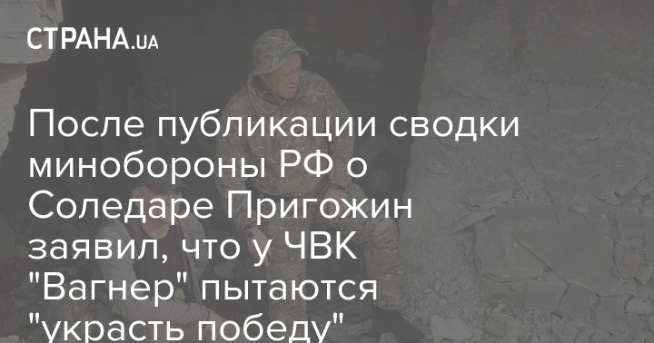 Он, очевидно, имеет в виду отсутствие упоминаний ЧВК "Вагнер" в сводках минобороны РФ о захвате Соледара, который, как утверждал Пригожин, штурмовали только "вагнеровцы".