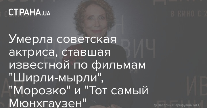 Также "Страна" рассказывала, что умерла актриса Александра Яковлева, игравшая в фильмах "Чародеи" и "Экипаж".