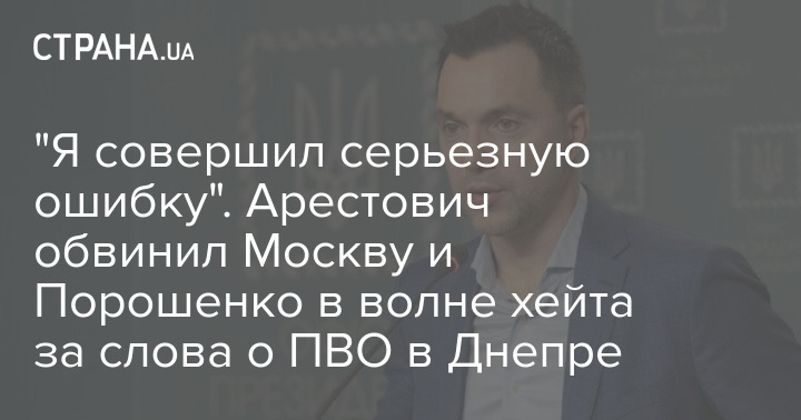 Советник Офиса президента Алексей Арестович прокомментировал свои слова о том, что ракета, упавшая на дом в Днепре, была сбита ПВО.