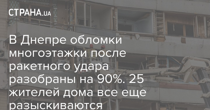 По состоянию на утро вторника, 17 января, обломки разрушенной российской ракетой многоэтажки в Днепре разобраны на 90%. Спасательная операция продолжается уже более 63 часов.