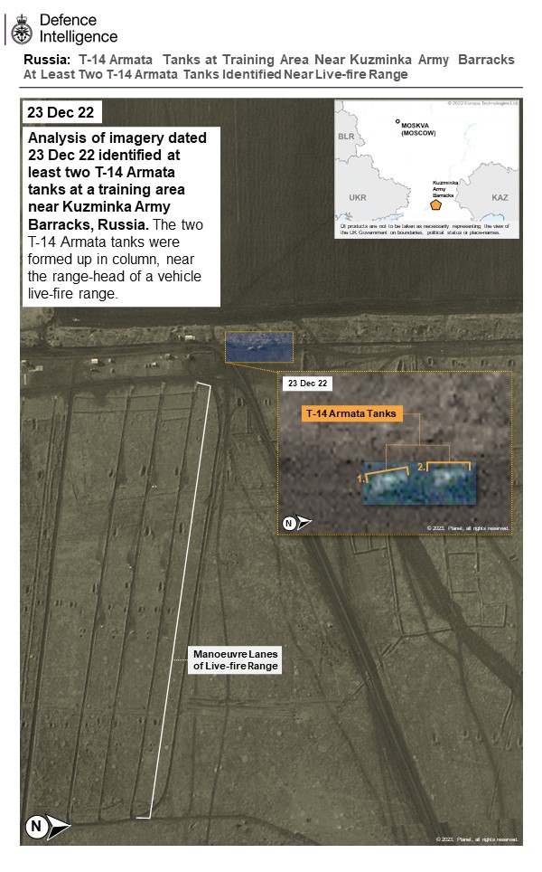 08:46 Россия, вероятно, рассматривает возможность размещения небольшого количества своих новых основных боевых танков Т-14 "Армата" в Украине, сообщает британская разведка.