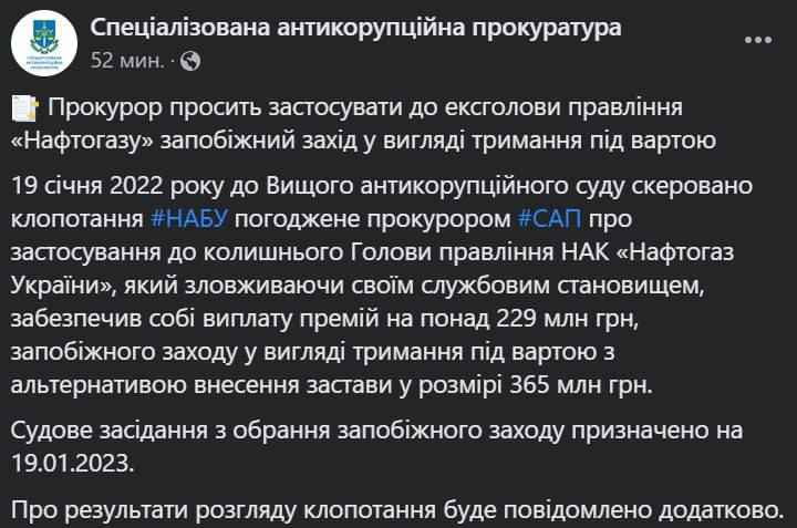 11.24 НАБУ объявило о подозрении бывшему главе правления "Нафтогаза", который руководил компанией с 2014 по 2021 годы. То есть - Андрею Коболеву.