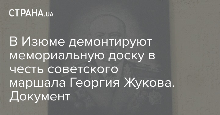 Изюмская районная военная администрация приняла решение демонтировать мемориальную доску в честь маршала Советского Союза Георгия Жукова.