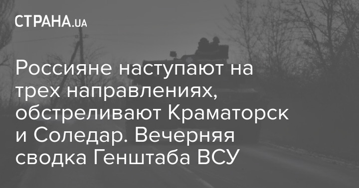 В Генеральном штабе Вооруженных сил Украины опубликовали оперативную сводку с фронта по состоянию на 18:00 20 января. Сообщается, что российские войска наступают на Донбассе и под Запорожьем, а также обстреливают Соледар и Краматорск.