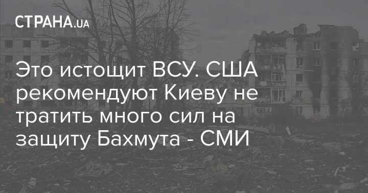 Это истощит ВСУ. США рекомендуют Киеву не тратить много сил на защиту Бахмута - СМИ