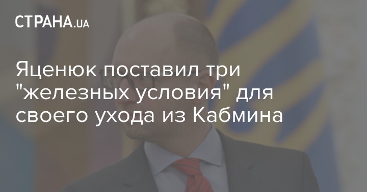 Глава Кабинета министров Украины Арсений Яценюк вновь заявил о готовности добровольно покинуть пост премьера, однако сделает он это лишь при выполнении трех условий. Сославшись на свою политическую силу "Народный фронт" Яценюк потребовал, чтобы прежде ухода ему сообщили об имеющейся кандидатуре "сменщика", т.е. нового премьер-министра, а также о составе нового Кабмина и программе его действий.