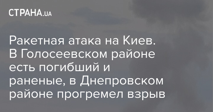 Ракетная атака на Киев. В Голосеевском районе есть погибший и раненые, в Днепровском районе прогремел взрыв