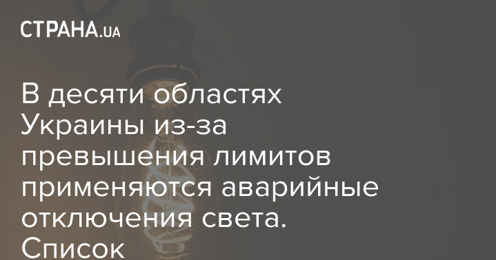 В десяти областях Украины из-за превышения лимитов применяются аварийные отключения света. Список