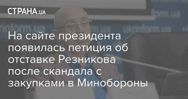На фоне скандала с государственными закупками в Министерстве обороны на сайте президента появилась петиция за отставку министра обороны Алексея Резникова.